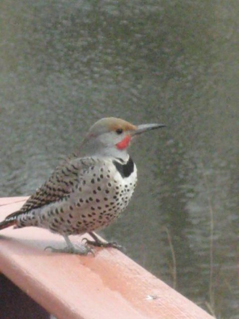 This Woodpecker is sitting on George’s Deck